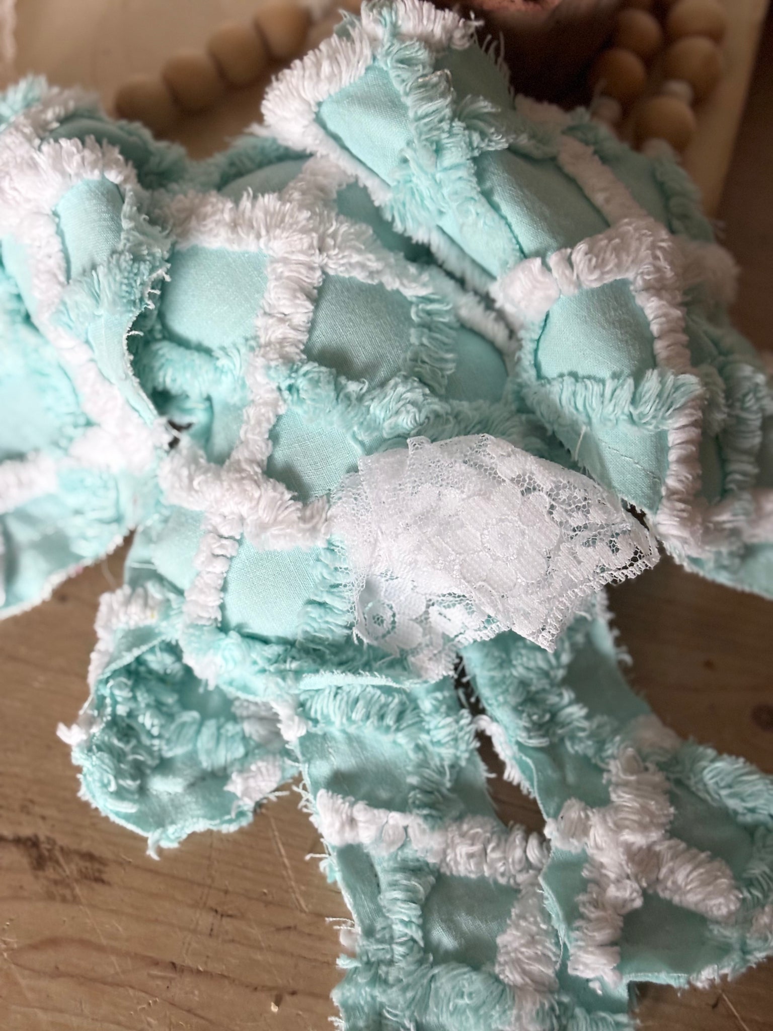 Vintage Turquoise and White Chenille and Pink Floral Bunny